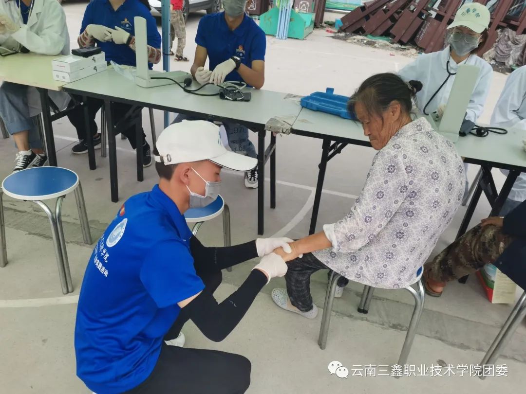 醫(yī)學專業(yè)的同學幫老人們檢查身體,為每位老人測量血壓,認真記錄每次血壓測量參數(shù)掌握老人血壓情況,給老人一些適宜的建議,提醒他們關(guān)注自身血壓健康。對于血壓偏離正常值的老人,同學們給出了一些相應的飲食建議和生活建議,整個活動進行的非常融洽。