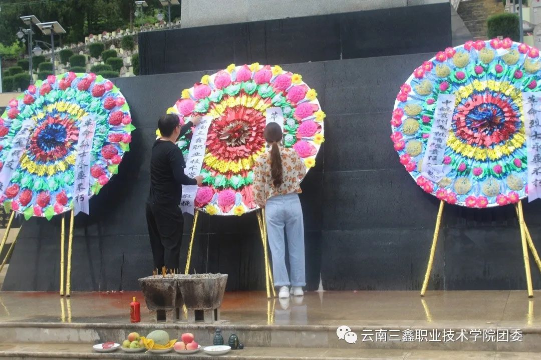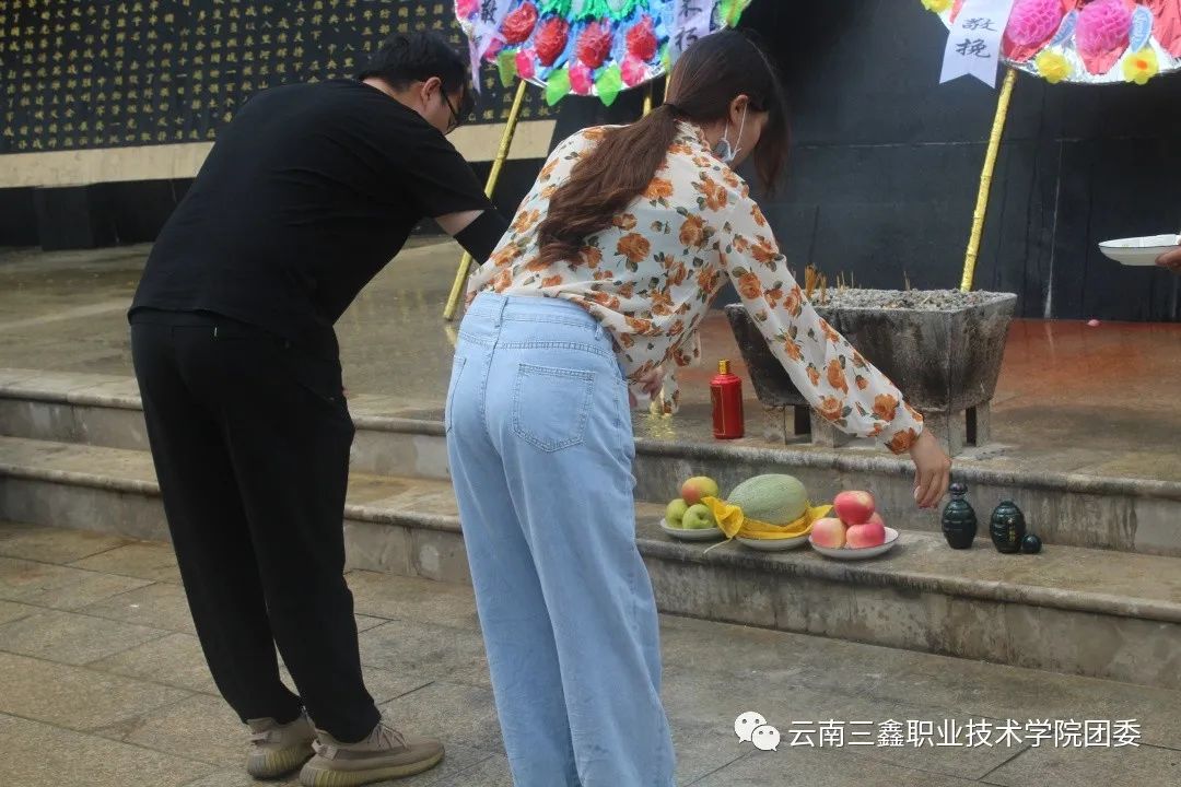 首先由學院團委書記王家琛老師和李慶妹老師帶領我們向烈士們默哀、獻煙,敬酒。