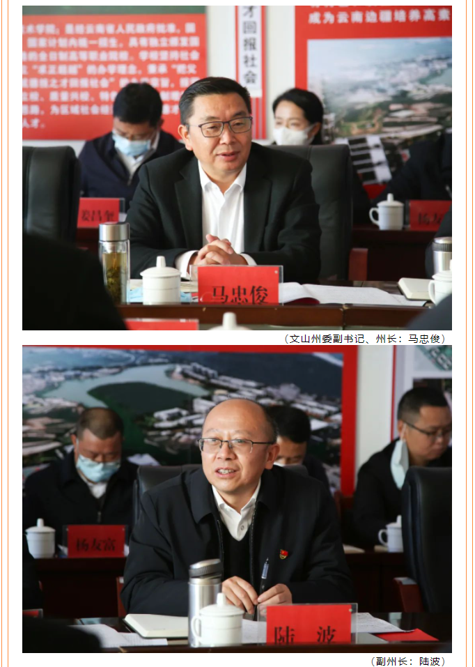 文山州委副書記、州長馬忠俊親率州教育體育局、州住房城鄉(xiāng)建設(shè)局、州財政局、州政府研究室等部門負責人到我校調(diào)研并召開座談會