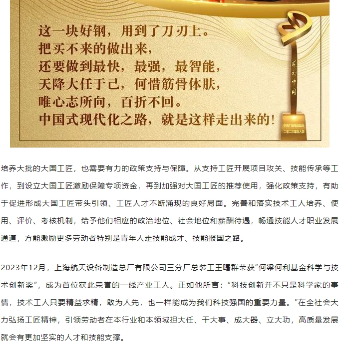 把第一線的大國工匠一批一批培養(yǎng)出來