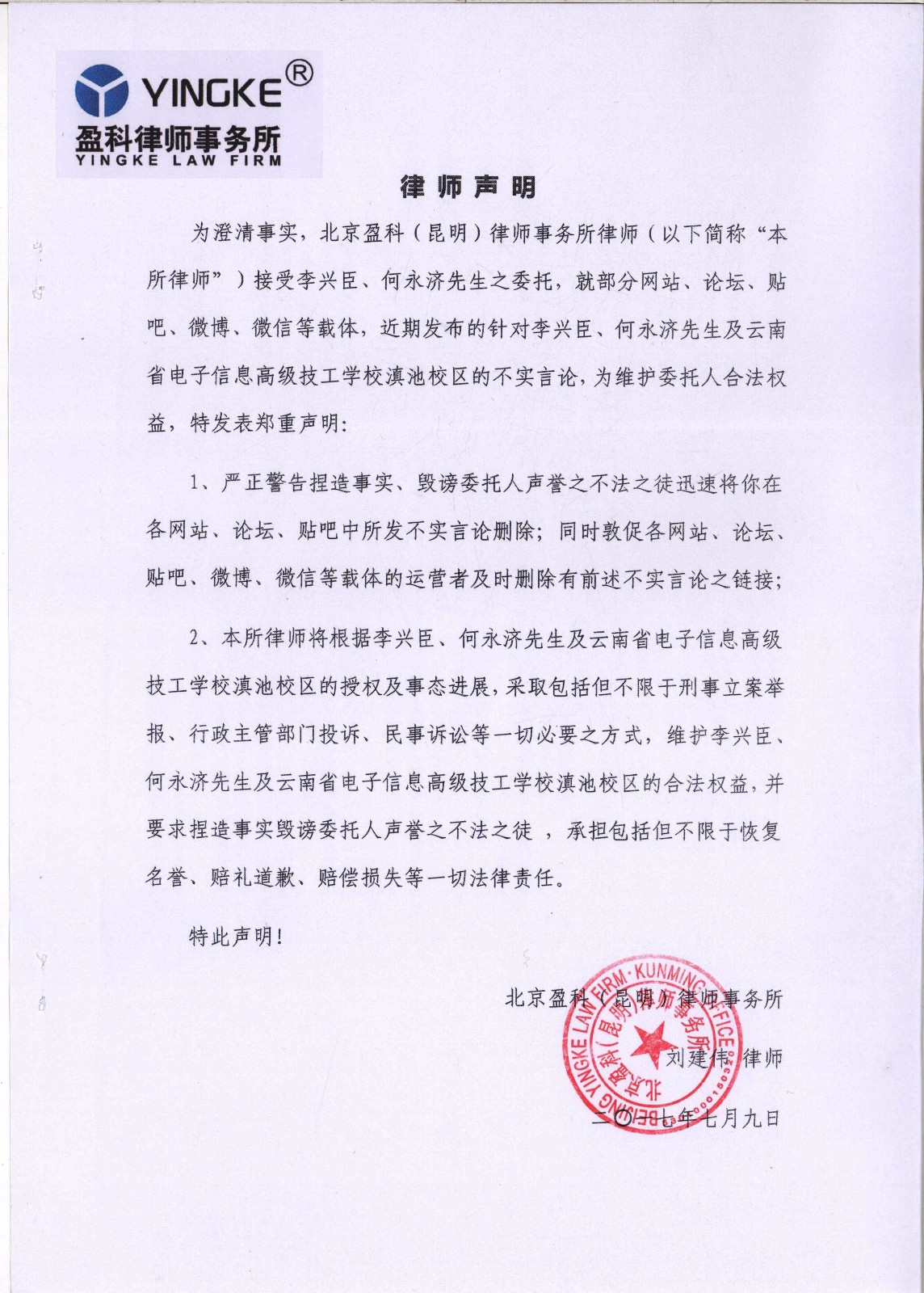 云南省電子信息高級技工學(xué)校(滇池校區(qū))關(guān)于對近期網(wǎng)絡(luò)誹謗事件的公告及嚴(yán)正聲明