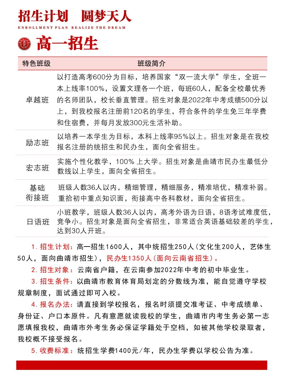 曲靖天人高級(jí)中學(xué)(2022年新高一,高三補(bǔ)習(xí)招生指南)